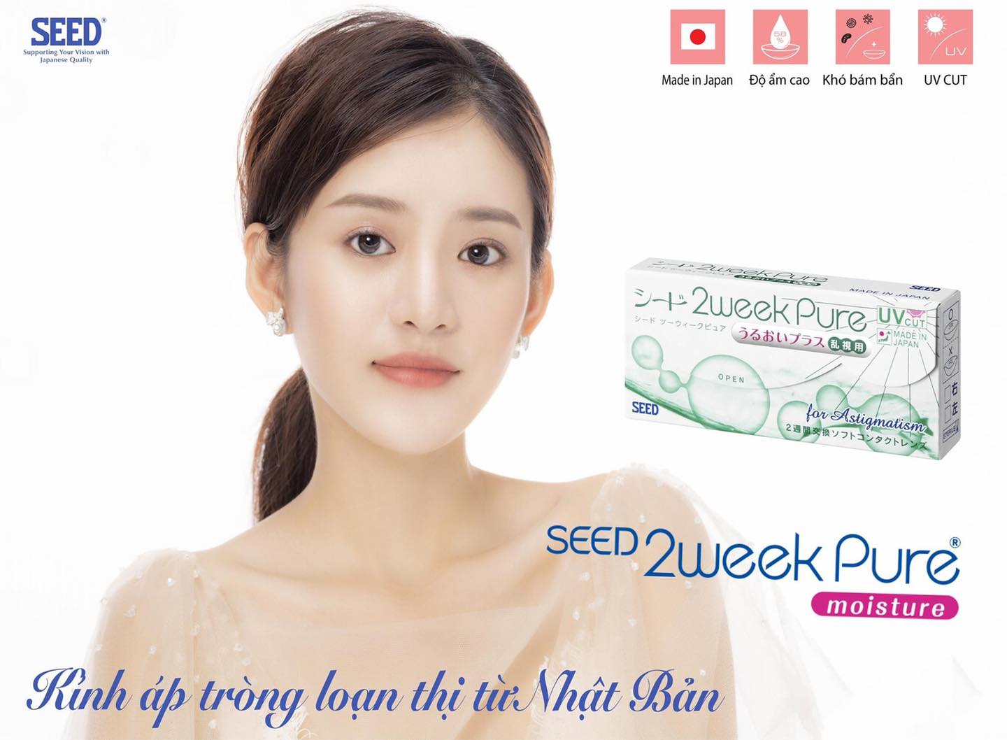 - Sản phẩm được sản xuất 100% tại Nhật Bản và kế thừa những phẩm chất tốt nhất từ dòng sản phẩm kính áp tròng mềm dòng PURE SERIES của SEED với độ mỏng đặc trưng, độ ẩm tốt và khả năng chống bám bụi vượt trội.