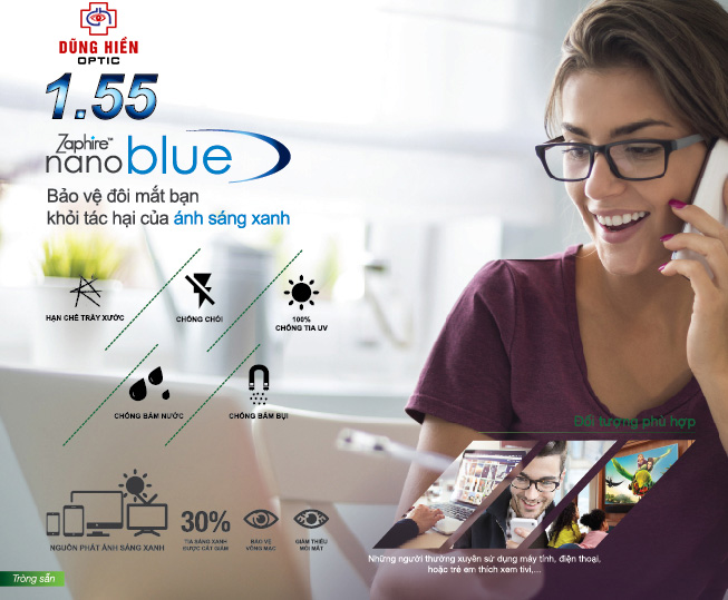 • Lớp phủ Nano Blue Zaphire SX độ trong cao theo tiêu chuẩn TOG, ngoài việc ngăn ánh sáng xanh, lớp phủ này cũng ngăn 100% tia cực tím (UV).