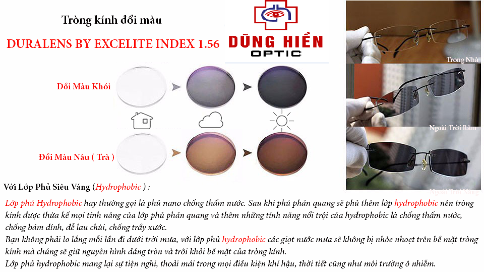 Tìm hiểu thêm về tròng kính đổi màu có độ Excelite tại hệ thống KÍNH THUỐC DŨNG HIỀN để được tư vấn và tham khảo sản phẩm: