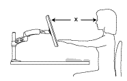 Ngồi cách máy tính khoảng 60 cm (cỡ một cánh tay). Đặt vị trí màn hình sao cho mắt nhìn hơi chếch xuống.