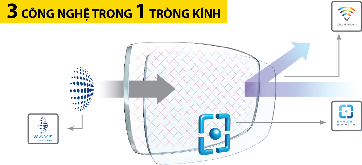 Công nghệ W.A.V.E: Cho một tầm nhìn thoải mái và rõ nét ngay lập tức trong mọi điều kiện ánh sáng với hình ảnh chân thực và giảm quang sai