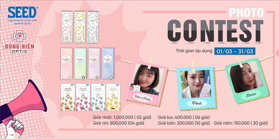 - Người tham gia chụp 1 bức ảnh trong đó sản phẩm kính áp tròng có màu của Seed như Eye coffret, Monthly color lens, Jill Stuart (Có thể là 1 hộp hoặc 1 cặp) và khuôn mặt của bản thân là trọng tâm bức ảnh. Sau đó gửi ảnh về inbox cho fanpage Facebook: Seed Việt Nam