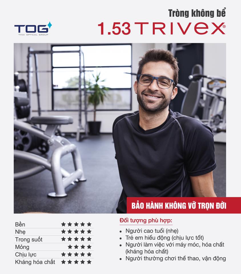 Trivex hoàn toàn xứng đáng là người bạn đồng hành đáng tin cậy của bất cứ ai mang kính, đặc biệt là trẻ em thích đùa nghịch và người lớn mê thể thao vận động.