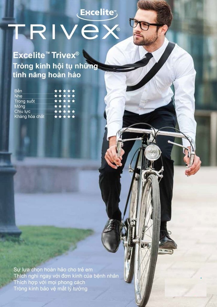 Excelite Trivex được nghiên cứu cho khả năng chịu lực tác động cao (đã trải qua bài test cho xe cán qua) cùng trọng lượng siêu nhẹ và hình ảnh sắc nét. Vì vậy có thể nói Trivex hoàn toàn xứng đáng là người bạn đồng hành đáng tin cậy của bất cứ ai mang kính, đặc biệt là trẻ em thích đùa nghịch và người lớn mê thể thao vận động.