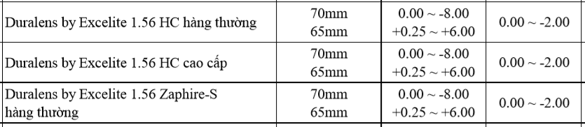 Tròng kính Duralens Excelite 1.56 Zaphire-SX có những loại nào?