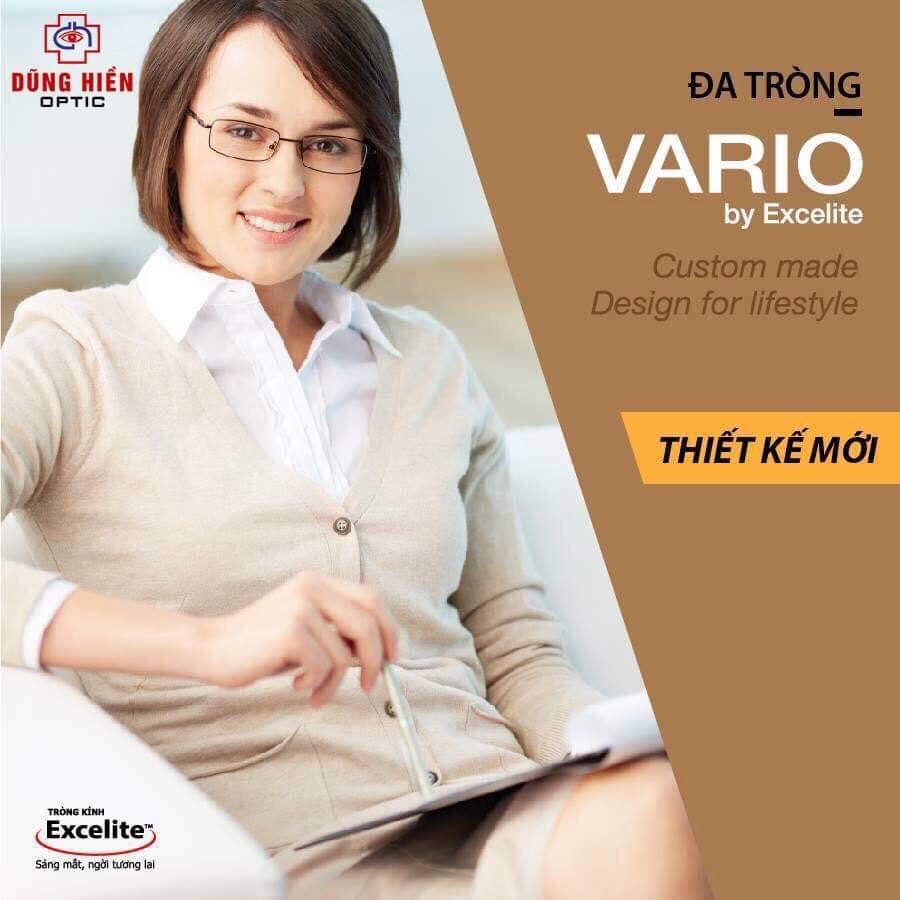 Vario by Excelite là thiết kế đa tròng kỹ thuật số mới nhất từ Optotech. Với tính năng cải thiện vùng nhìn trung gian, xa và gần kết hợp giảm loạn vùng biên, Vario cho người mang cảm giác thoải mái khi di chuyển tầm mắt. Thiết kế phù hợp cho người dùng mới trải nghiệm kính đa tròng, đặc biệt với người châu Á.